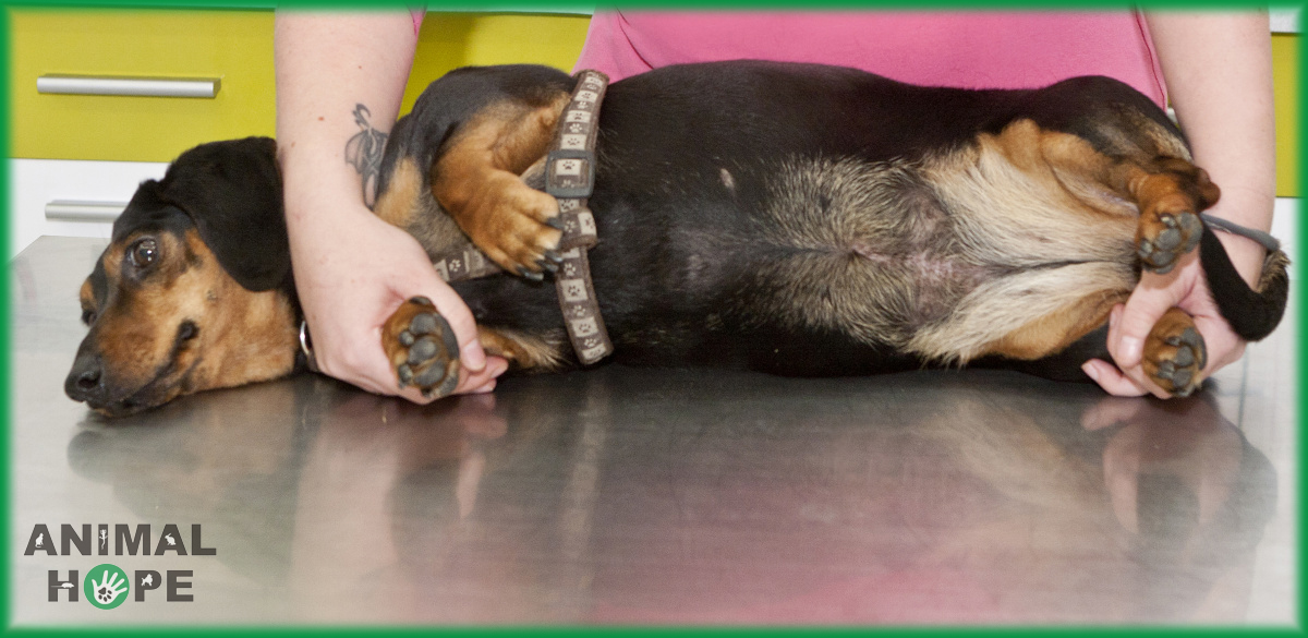 Fixace psa při prohlížení nebo ošetření oblasti břicha a hrudníku