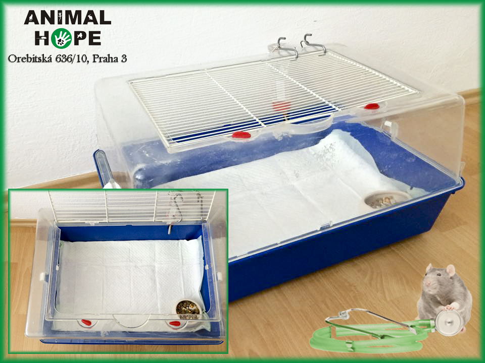 mít potkan ihned k dispozici vodu a jídlo. Čím dříve začne jíst a pít, tím lépe!
